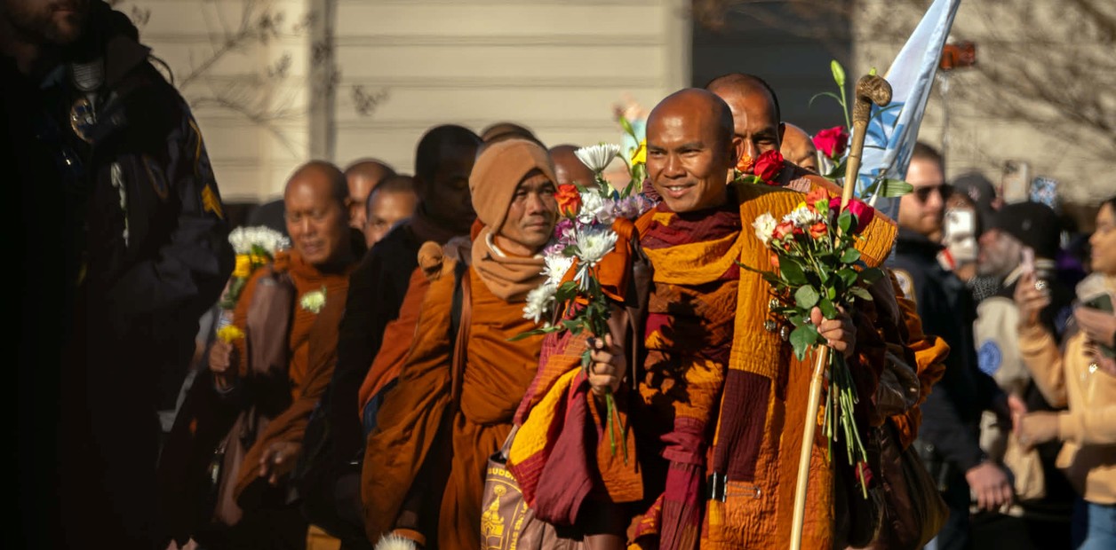 Un grupo de monjes budistas avanza a paso firme por rutas y ciudades de Estados Unidos con un mensaje simple y exigente: la paz como práctica cotidiana. La caminata, que comenzó el 26 de octubre en Fort Worth, Texas, ya alcanzó el estado de Georgia y mantiene como destino final Washington, DC. La travesía, que atraviesa diez estados, se convirtió en un fenómeno seguido por cientos de miles de personas en redes sociales.