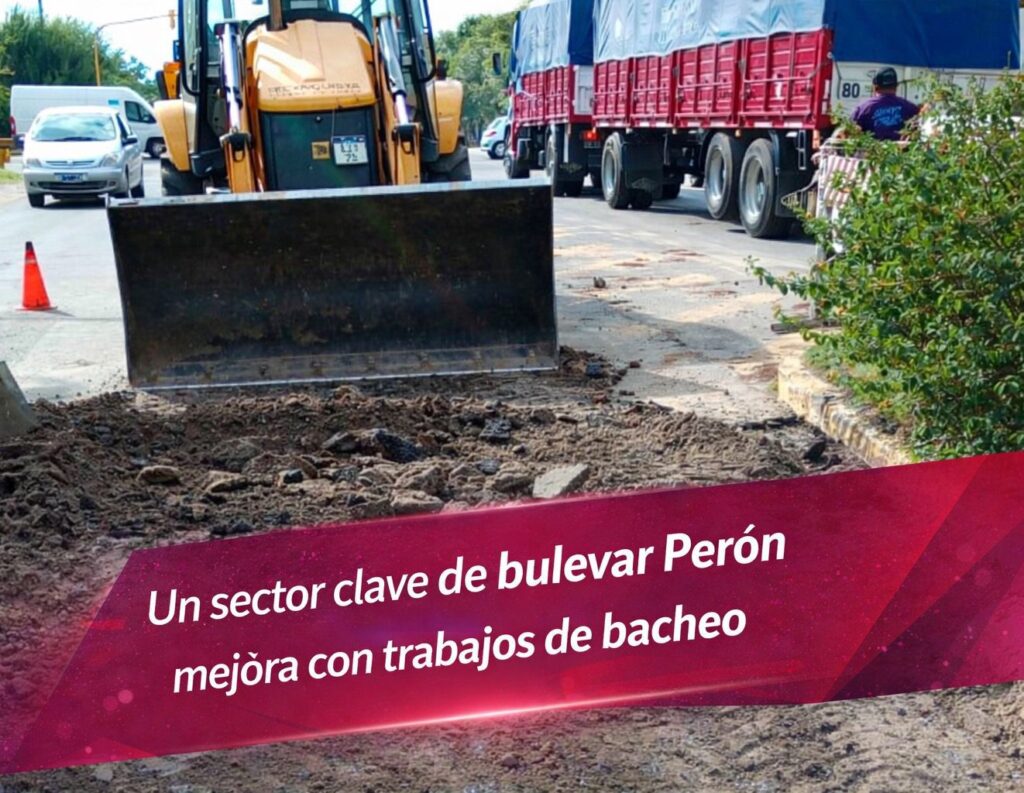 Este lunes 16 de marzo, en el marco del Plan de Recuperación de Pavimento Urbano, cuadrillas municipales comenzaron con trabajos de bacheo sobre bulevar Perón, a pocos metros de su intersección con la Ruta Nacional 11, en la mano con dirección hacia el oeste.