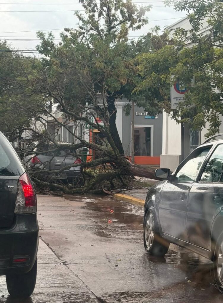 Mañana de caos en Reconquista: Fuerte temporal derribó árboles, cables y aplastó un vehículo